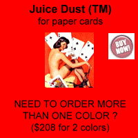 Many customers order the juice marker or Juice Dust for red cards and blue Juice Dust for blue cards so they have a way to mark both red and blue backed cards. Bear in mind that N-Dust (Juice) works on most color cards. So N-Dust gives you better value for your money and more flexability.
